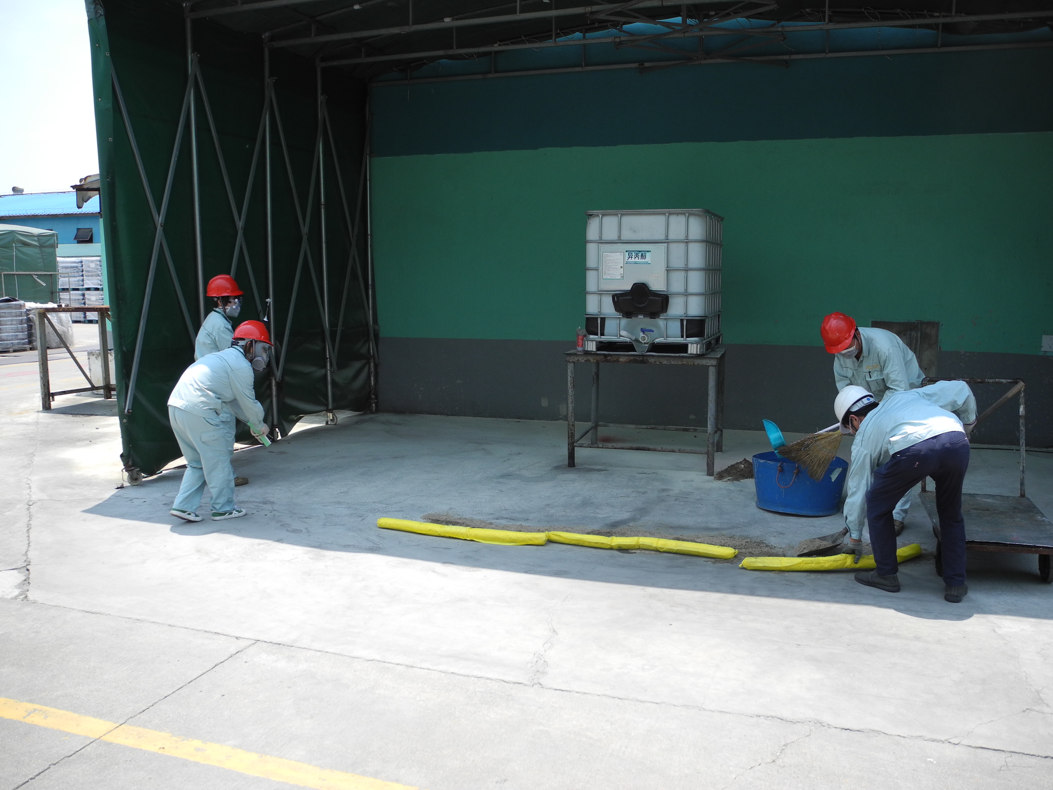 今年六月份是全國第二十個“安全生產(chǎn)月”,為進一步加強安全生產(chǎn)宣傳教育,永華組織全體員工于6月25日中午開展了一次綜合應(yīng)急預(yù)案演練,支塘鎮(zhèn)安監(jiān)辦領(lǐng)導(dǎo)現(xiàn)場參觀指導(dǎo)。這次演練設(shè)定的事故場景是:模擬分裝凈化崗位異丙醇鋼桶泄漏,由于靜電引發(fā)火災(zāi)事故,操作工被煙霧熏倒,經(jīng)公司先期處置,后經(jīng)各救援組救援,人員得到救治,火災(zāi)得到控制。